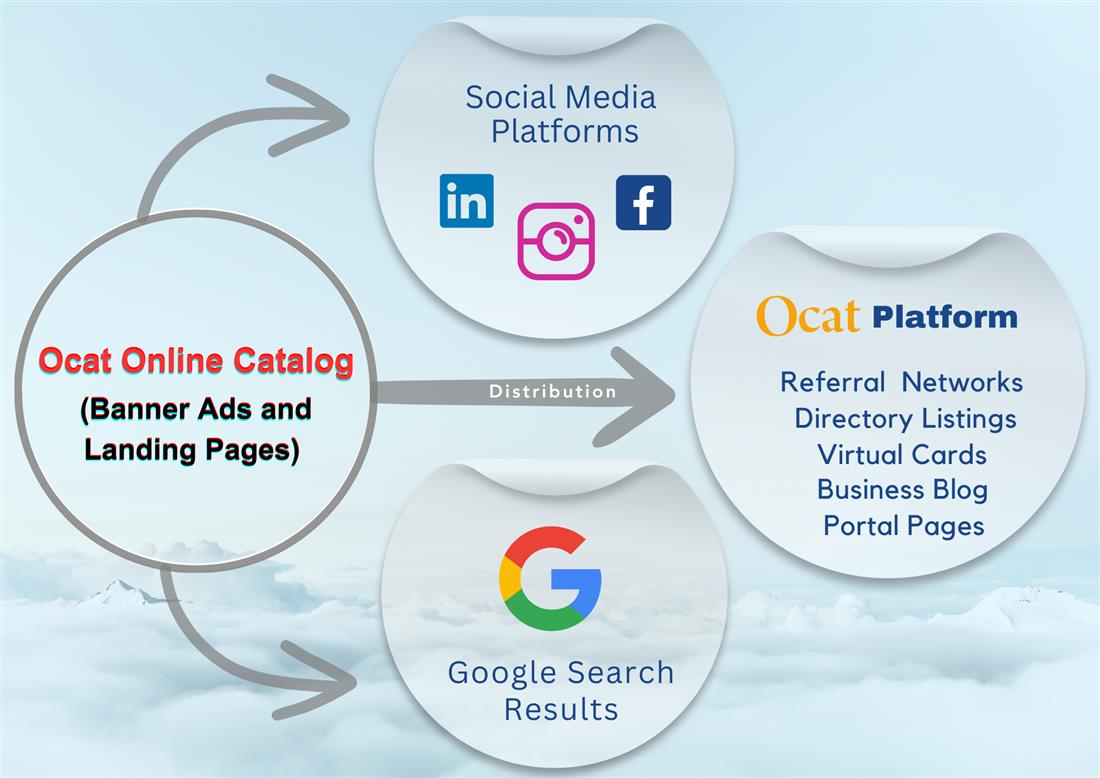 ഒക്യാറ്റ് ബാനർ പരസ്യങ്ങളും ലാൻഡിംഗ് പേജുകളും പ്രസിദ്ധീകരിച്ച് ഓർഗാനിക് ഗൂഗിൾ സെർച്ച്, മാർക്കറ്റിംഗ് പോർട്ടലുകൾ & റെഫെറൽ നെറ്വർക്കുകൾ വഴി വിതരണം ചെയ്തു ഒരു ബിസിനസ്സ് വെബ്സൈറ്റ് ഓൺലൈനിൽ പ്രചരിപ്പിക്കാൻ സാധിക്കുന്നു.